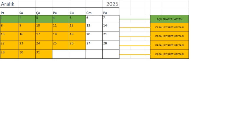 08.12.2025- 12.12.2025 TARİHLERİ ARASI KAPALI ZİYARET HAFTASI