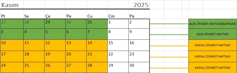 10.11.2025 - 14.11.2025 TARİHLERİ ARASI KAPALI ZİYARET HAFTASI